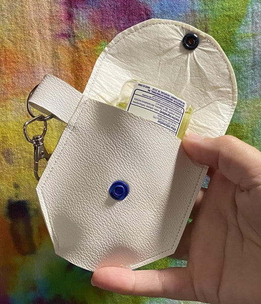 3.1 oz cutaway stabilizer, 3/4 inch by 3-inch vinyl strip for loop, 4inch square vinyl for pocket, 4x8 inch vinyl for the front section ,1 set of snaps keyring, I used the 7inch square hoop.
